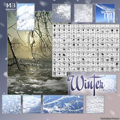 большая коллекция кистей на тему зимы