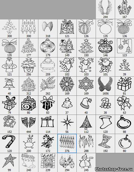 Новогодние мультяшные кисти для фотошопа