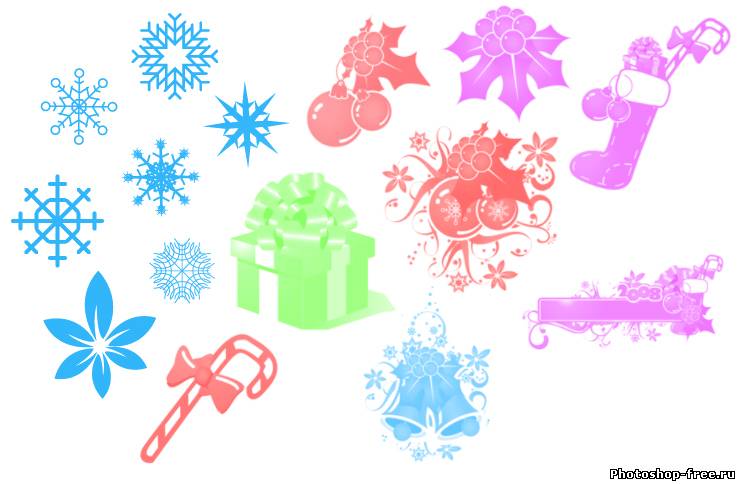 | Новогодние шарики, снежинки, подарки и украшения christmas brushes | |