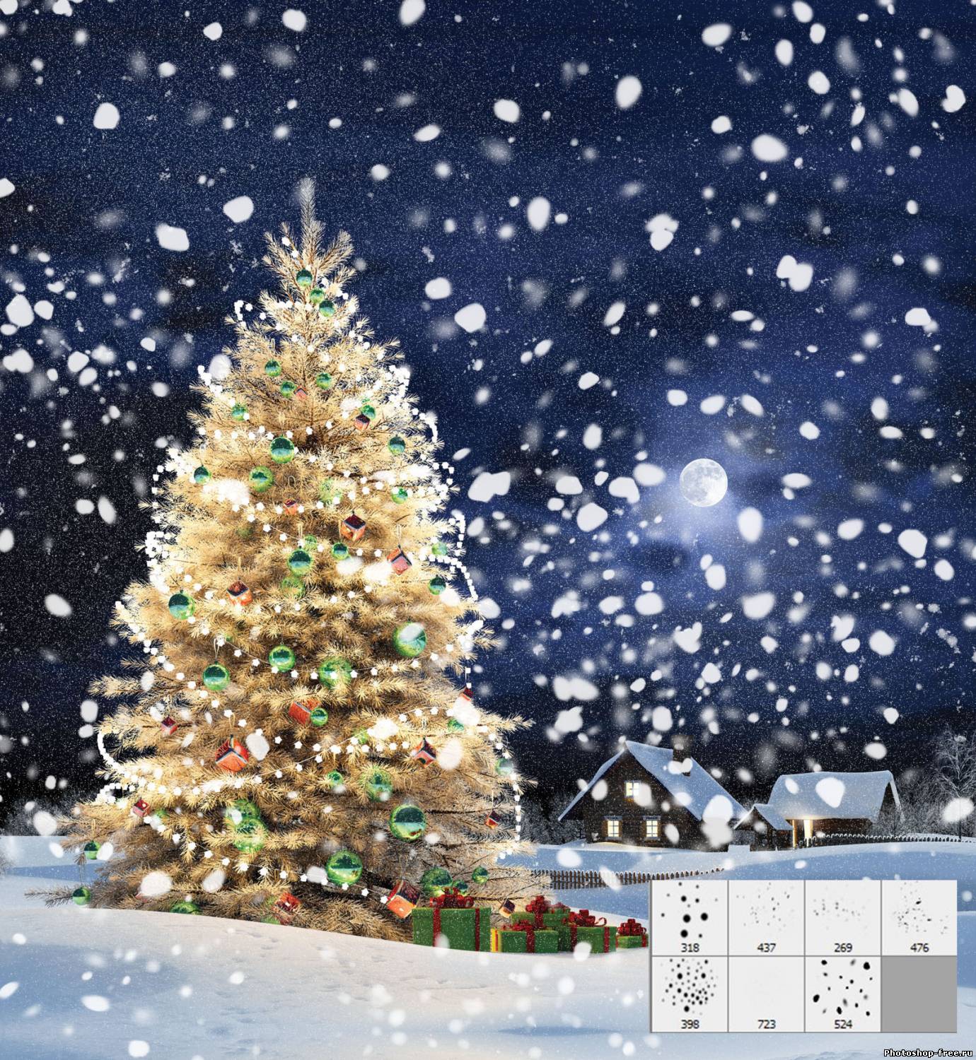 Кисти для фотошопа реалистичный снег, снежинки