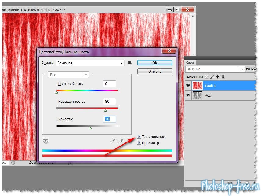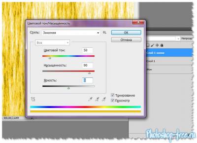 Создаем новый документ,размер сделайте немного больше чем вам надо Продублируйте слой Ctrl+J. Выберите первый слой,нажмите Изображение - Коррекция - Цветовой тон/Насыщенность Ctrl+U, Поставьте галочку напротив Тонирование colorize и примените с такими настройками :