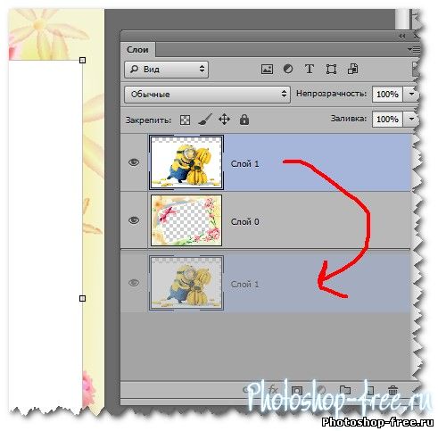 Шаг2 Инструментом перемещение (Move Tool (V))