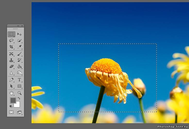Прямоугольная область (Rectangular Marquee Tool) выделяем часть фото в прямоугольник.