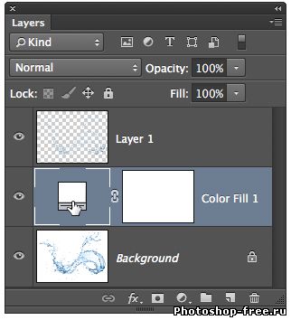 В панели Layers перетащите слой цвет заливки ниже слоя (Layer 1). Вода выглядит слишком прозрачной, но прежде, чем мы изменить его, давайте подтвердим это.