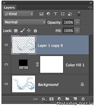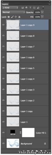 Теперь это совершенно ясно, что элементу воды не хватает плотности. Чтобы построить плотность, включите извлеченный всплеск воды слой и нажмите Ctrl-J несколько раз. В нашем случае автор скопировал слой с водой 9 раз.