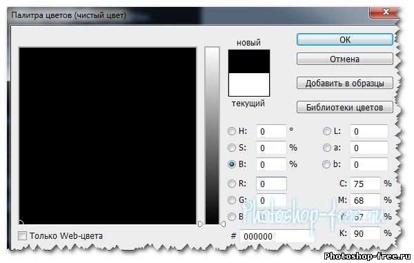 Дважды щелкните миниатюру слоя для цвета заливки слоя. С помощью кнопки B радио продолжает работать в Color Picker, установите значение 0% (черный) и нажмите кнопку ОК