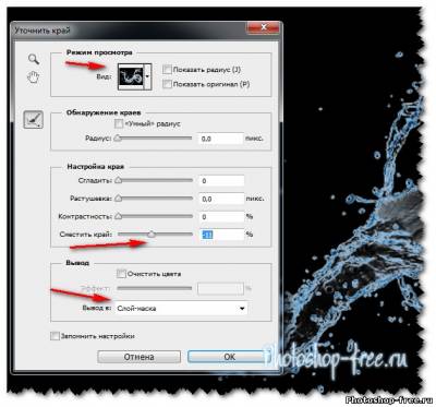 Зайдите в Select> Refine Edge ( Выделение >> Уточнить край ).В окошке "Вид" выберите сцену на черном (B). Перетащите ползунок "Сместить край" влево . Установите выход на меню Layer Mask и нажмите OK. Вуаля!