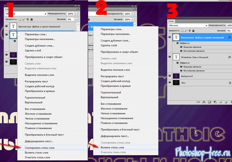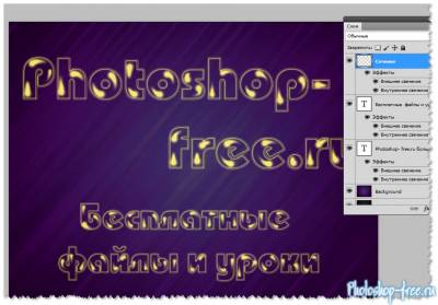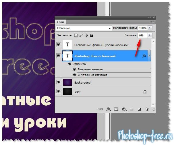 Шаг 1. Пишем текст Создаем новый документ или открываем наш фон. Пишем 1 текст большими буквами и 2 текст маленькими. На ваше усмотрение. Шаг 2. Применяем стили слоя Выбираем в панели слоев текст большой и дважды щелкните что бы применить стили слоя : – Внешнее свечение Outer Glow