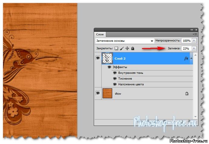 В панели слоев ищем " Заливка слоя" и ставим ползунок на 22% Можно экспериментировать , как вашей душе угодно Сообщить о проблемном уроке | |