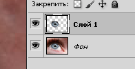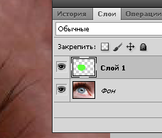 Глаз у нас открыт. Создаем новый слой. Берем кисть и рисуем на том месте где должен быть иной цвет.