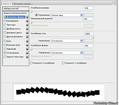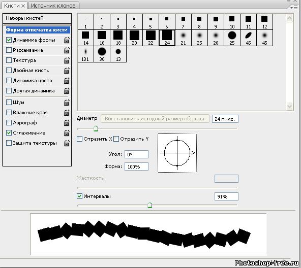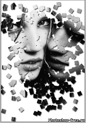 Для этого открываем фотографию к которой хотим применить данный эффект. Щелкаем по фоновому слою дважды что бы превратить его в обычный редактируемый. ![]() Теперь нам нужно будет создать чистый слой под фоновым слоем. Для того что бы новый слой расположился под фоновым слоем зажимаем Ctrl и кликнем по иконке с новым слоем ![]() Нам нужно будет залить этот слой белым слоем, можно воспользоваться заливкой а можно это сделать с помощью сочетания клавиш Alt+ delete или Alt + beckspace ![]() Создадим маску слоя рядом с фотографией. Для этого мы можем нажать на кнопочку «добавить маску слоя» и рядом получится белый квадратик, но нам нужно сделать так что бы фотографии не было видно. Значит нам нужно залить фотографию черным цветом. Опять же можно воспользоваться инструментом «заливка» и залить квадратик черным цветом, переключившись клавишей D. Можно воспользоваться комбинацией клавиш и нажать Alt + кнопка «добавить маску слоя». ![]() Теперь входим в инструменты и нам нужно установить набор который называется «квадратные кисти». Выберем самую большую кисть и перейдем в палитру кисти. Мы можем найти ее через меню окно или нажать на кнопку в настройках. ![]() ![]() Диаметр пока оставим такой. ![]() Затем зайдем в меню «Форма отпечатка кисти» и установим интервал порядка 91- 99% . Доведем до того состояния что бы каждый квадратик шел по отдельности. Дальше перейдем в «Динамику формы». Колебание угла изменим на 100% ![]() Зайдем в опцию «Рассеивание». Его можно оставить таким же. Проверим прозрачность и нажим. Обе опции должны быть на 100%. ![]() Перейдем на миниатюру и применим стиль «Тень» ![]() Вернемся на маску слоя и начнем рисовать квадратики. У нас получился такой эффект как буд то бы мы собираем пазлы. ![]() Теперь перейдем на черный цвет в качестве фонового. ![]() И тем же размером кисточки пробежимся по уже созданным квадратикам. Теперь наши квадратики превратились в осколки. Вы можете продолжать или убирать квадратики быстро переключаясь клавишей Х между цветами ![]() Теперь нам нужно придать картинке эффект движения как буд то бы картинка действительно упала и разбилась. Для этого нам нужно захватит слой с картинкой и маской и продублировать его. ![]() На новом скопированном слое при активной маске слоя мы переходим в меню фильтр. Выбираем размытие, размытие – радиальное- метод линейный и степень 72-76%. Применим его примерно 3 раза ![]() Фото готово! Сообщить о проблемном уроке Источник: http://demiart.ru/forum/index.php?showtopic=56130 | |
