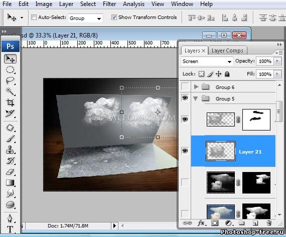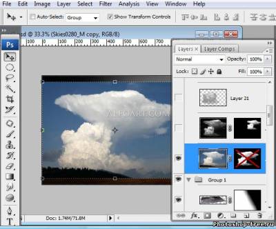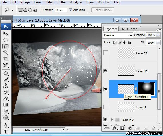57) Добавьте маску и, используя мягкую кисть, удалите центральную часть.