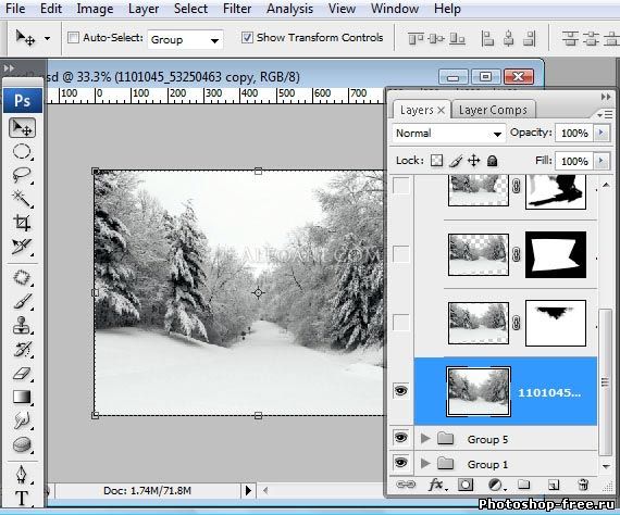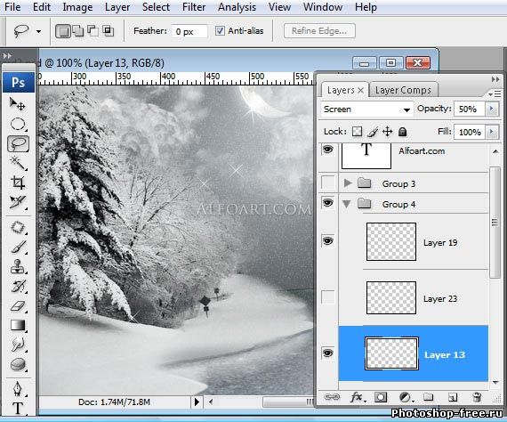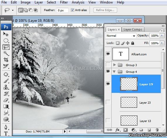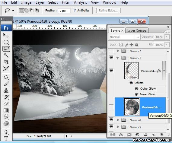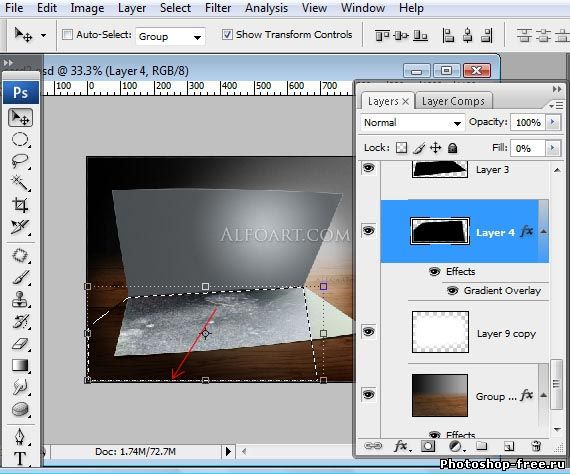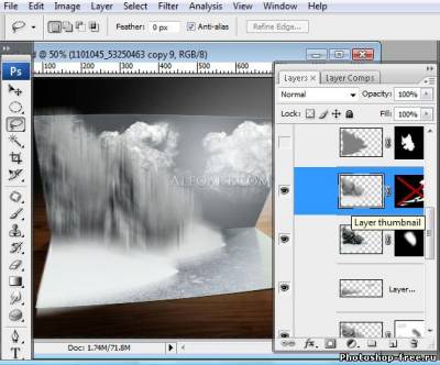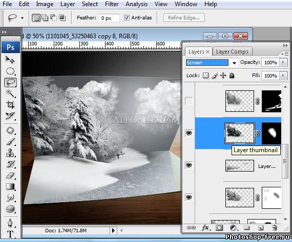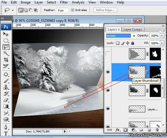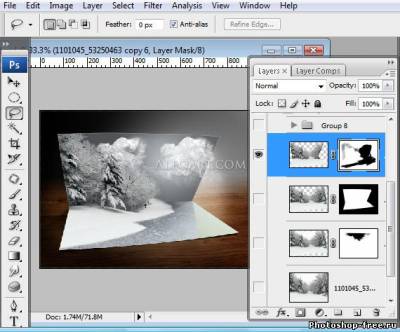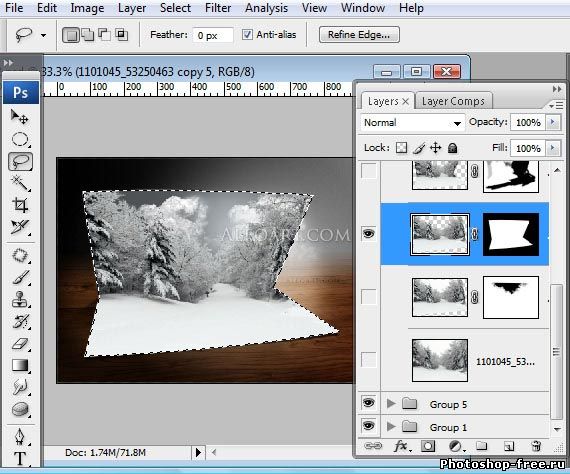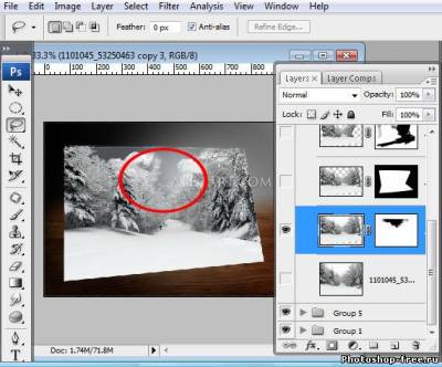 18) Добавьте изображение с ледяной поверхностью. Загрузите выделение этой поверхности.