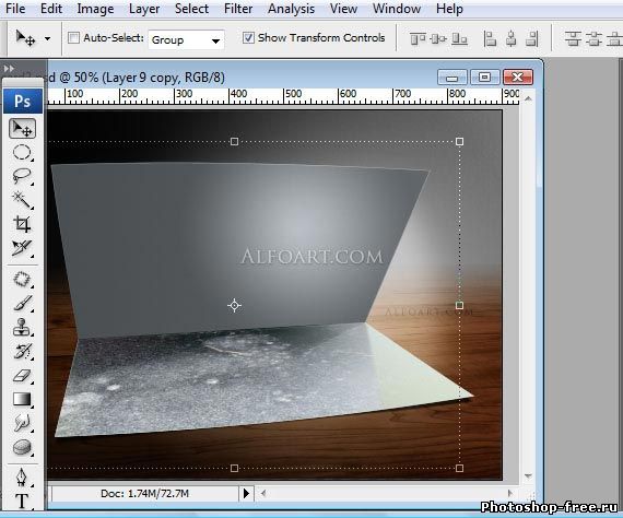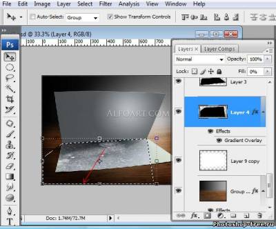 5) По аналогии создайте тень под открыткой, только в этот раз сдвиньте левый и правый углы немного вниз.
