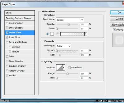 63) Измените режим смешивания слоя на Screen и примените стили слоя.