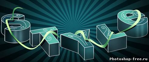 Захватывающий текстовый эффект 1. Создаем новый файл 1280x1024 пикс. и 72 dpi. 2. При помощи Rectangle Tool (U) рисуем прямоугольник на весь документ, чтобы создать фон для нашей картинки![]() 3. Применяем к нашему прямоугольнику следующие стили слоя (Layer>Layer Style> Blending Options): ![]() Параметры градиента: ![]() Вот что у нас должно получиться: ![]() 4. Берем инструмент Custom Shape Tool (U) Выбираем фигуру как показано на рисунке ниже и представим себе лучи, исходящие от центра нашего документа. Рисуем фигуру.![]() 5. Выбираем инструмент Convert Point Tool и, удерживая клавишу shift, выделяем у нашей фигуры все точки внутреннего маленького круга (острые концы наших лучиков, которые сойдутся в центре), затем нажимаем ctrl+T и используем Maintain aspect ratio , чтобы соединить наши лучики в центре документа. ![]() 5. Выставляем параметры слоя: Opacity 70%, Fill 0% 6. Применяем следующие стили слоя (Layer>Layer Style> Blending Options) : ![]() Параметры градиента: ![]() Вот что у нас должно получиться: ![]() 7. Создаем новый слой (Create new layer), берем мягкую кисть (Brush Tool ) черного цвета, диаметр 100, выставляем непрозрачность кисти 10% (Opacity 10%) и затемняем края нашей картинки![]() Наш фон готов ![]() Приступим к самому тексту. 8. Напишем слово STYLE, располагая каждую букву на новом слое. ![]() ![]() 9. При помощи Edit>Free Transform>Skew наклоняем каждую букву, чтобы получилось нечто похожее на рисунок ниже: ![]() 10. Соединяем слои с буквами (Merge Down), чтобы все слово находилось на одном слое. 11. Теперь придадим нашему слову объем. Удерживая клавиши ctrl+alt, несколько раз нажмем на клавиатуре стрелку вверх. ![]() 12. Соединим (Merge down) все получившиеся слои, кроме верхнего (со словом STYLE) 13. Выставляем следующие стили для получившегося слоя с объемом (Layer>Layer Style> Blending Options) : ![]() Параметры градиента: ![]() Stroke ![]() ![]() 14. Теперь создадим новый слой над нашим объемом (Create new layer) и, нажав ctrl, выделим оба слоя (как на рисунке ниже) (доступно для Adobe Photoshop 9 и выше – примечание переводчика). Только после этого нажимаем ctrl+E. ![]() 15. На получившемся слое используем Burn Tool (O) , чтобы нанести тени на объем букв.![]() 16. Здесь же используем Dodge Tool (O) для освещения объема![]() 17. Переходим на верхний слой со словом STYLE. Применим следующие стили слоя (Layer>Layer Style> Blending Options) : ![]() Параметры градиента: ![]() Stroke ![]() ![]() 18. Берем инструмент Line Tool (U) белого цвета и рисуем вертикальные линии, как показано на рисунке, для придания большего объема буквам![]() 19. Теперь выбираем инструмент Pen Tool (P) и рисуем полосу черного цвета. Меняем ее форму при помощи Convert Point Tool ![]() 20. Применяем следующие стили слоя (Layer>Layer Style> Blending Options) : ![]() Параметры градиента: ![]() ![]() 21. Таким же образом нарисуйте еще линию: ![]() 22. Стили слоя (Layer>Layer Style> Blending Options) : ![]() Параметры градиента: ![]() ![]() 23. Рисуем третью линию: ![]() 24. Стили слоя (Layer>Layer Style> Blending Options) : ![]() Параметры градиента: ![]() ![]() Вот так будет выглядеть наш рисунок: ![]() 25. Объединяем в группу слои с получившимися тремя линиями. Копируем сделанную группу и убираем у нее все стили (Blending Options). Нажимаем ctrl+T (Free Transform) и перемещаем слои как показано на рисунке ![]() 26. Объединяем слои в группе с черной линией. Оставаясь на этом слое, нажимаем Add a Mask в панели слоев. Затем берем Brush Tool ( черного цвета, чтобы удалить ненужные части тени (нашей черной линии). ![]() ![]() 27. Снова берем Brush Tool , только теперь белого цвета, и рисуем орнамент как показано на рисунке ниже![]() 28. Меняем параметры наложения слоя на Overlay ![]() 29. Создаем новый слой (Create new layer). Той же кистью, что и