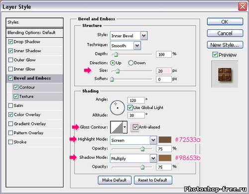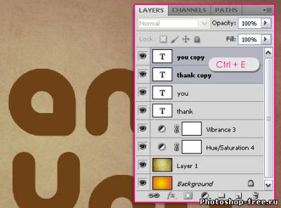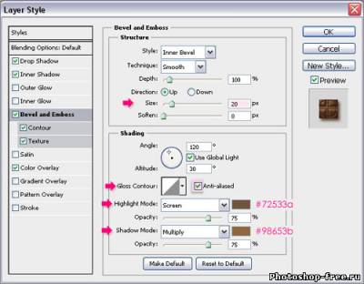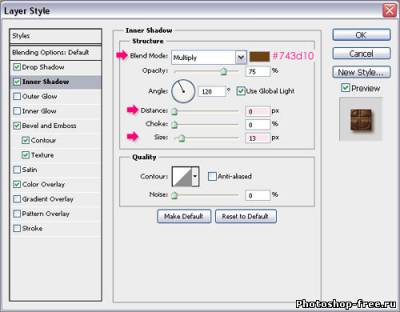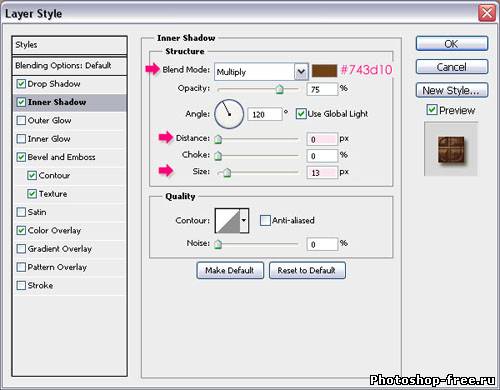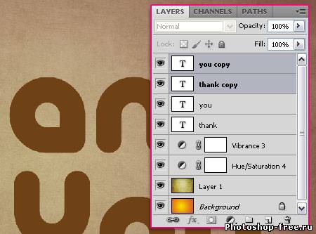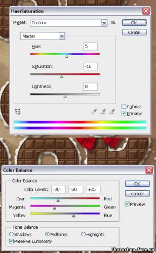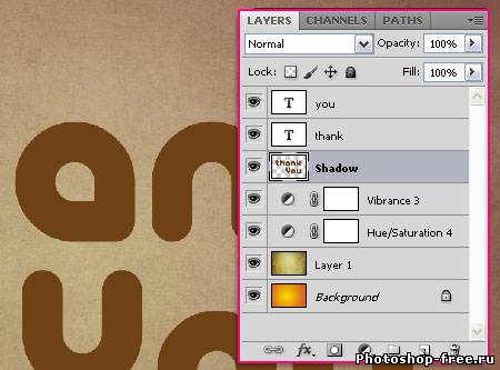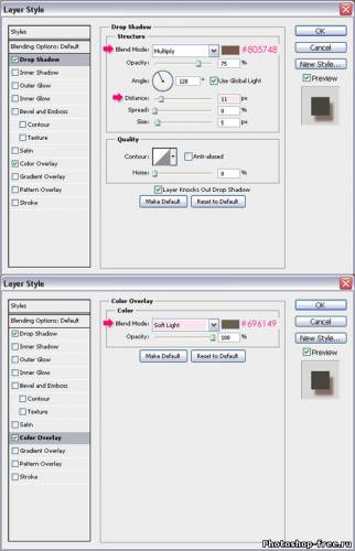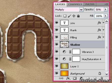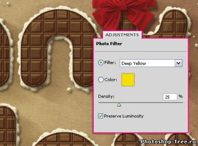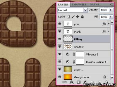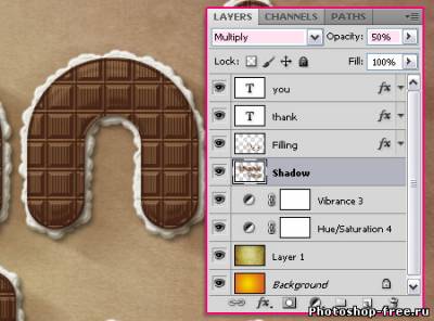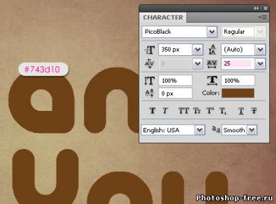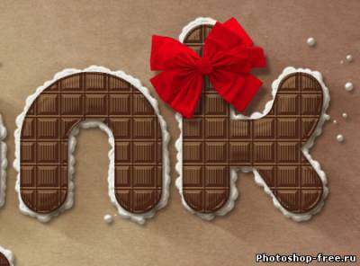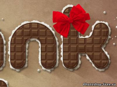 ![]() Нам понадобятся: * Фон Colored Vintage Paper: Texture Pack * Bows/бантики * Шрифт * Узор Step 1: - Передний план #fece01, задний план #e8661b, берем инструмент градиент, устанавливаем значение Радиальный градиент (Radial Gradient) и от центра документа проводим к краю.![]() - Вставляем желтую Vintage Paper Texture,устанавливаем непрозрачность на 50%. ![]() - Создаем новый корректирующий слой (New Adjustment Layer) иконка на панели слоев черно-белый кругl, и выбираем цветовой тон/насыщенность (Hue/Saturation) . ![]() - Цветовой тон -10 и насыщенность -40. ![]() - Снова создаем новый корректирующий слой --- Вибрация. ![]() - Вибрация 100 и насыщенность -40. ![]() Step 2: - Теперь создадим шаблон или его можно скачать. Создаем новый документ (ctrl +N) 30 x 30px белого цвета. Увеличте документ , что бы работать дальше с ним. ![]() - Инструментом Прямоугольная область (Rectangular Marquee Tool),выделите весь наш квадрат.![]() - В настройках инструмента поставьте "вычитание из выделенной области" , и отступая 1px нарисуйте квадрат поменьше. * Откройте панель Infol (окно Window -> инфо Info) . ![]() - Закраске его цветом #888888. ![]() - Нажмите Ctrl+Dчто бы снять выделение, повторяем предыдущий шаг. Выделяем белую область и отступная 2px рисуем меньший квадрат. Залейте его цветом #222222. ![]() - Снова повторяем предыдущий шаг. Рисуем еще 1 квадрат с отступом 2px , заливаем цветом #c7c7c7. ![]() - Теперь нам надо сделать вертикальные линии 1px шириной, с расстоянием между ними 2px. Берем инструмент Прямоугольное выделение (Rectangular Marquee Tool) и ставим его параметры “Добавить к выделенной области” и рисуем наши линии. Заливаем цветом #e9e9e9 , нажимаем (Ctrl + D). ![]() - Идем редактирование --- определить как узор (Edit -> Define Pattern). У кого ничего не получилось , скачать узор можно тут [color=red]Step 3:[/color] -Возвращаемся к предыдущему документу,пишем текст цветом #743d10. Шрифт PicoBlack, размер 350px. Трекинг выставляем 25. У автора каждое слово на отдельном слое ![]() - Продублируйте слои с текстом ctrl + j. ![]() - В панели слоев выделяем дубликаты текста, клик правой кнопкой мыши, в появившемся меню выберите Растрировать текст, затем нажмите Ctrl + E. ![]() - Полученный слой поставьте под слоями оригинального текста и назовите его “Shadow”. Позже мы сделаем из него тень с помощью фильтра Размытие в движении (Motion Blur filter). ![]() Step 4: Дважды кликните на оригинальный текстовый слои , что бы применить к нему стили: - Тень ( Drop Shadow): Цвет #402713. ![]() - Внутренняя тень (Inner Shadow): Цвет #743d10, Дистанция 0, Размер 13. ![]() - Тиснение (Bevel and Emboss) : Размер 20, Галочку на сглаживание (Anti-aliased box), Режим подсветки ставим цвет #72533a, Режим тени цвет #98653b. ![]() - Контур (Contour) : Выбираем контур Слабый уклон- долина (Shallow Slop – Valley), Галочку на сглаживание. Как добавить контуры image . Скачать контуры ![]() - Текстура ( Texture): Выбираем нашу уже созданную текстуру из Step 2. Скачать chocolate_pattern.Галочку на инвертировать. ![]() - Наложение цвета (Color Overlay) :Выставляем цвет #673d26, вы можете подобрать для себя цвет сами. ![]() - Нажимаем ОК и вот что у нас вышло. ![]() Step 5: Открываем панель Кисти (Окно Window -> Кисти Brush), Выберите круглую кисть и следуйте инструкции как на картинке: - Форма отпечатка кисти Brush Tip Shape: ![]() - Динамика формы Shape Dynamics: ![]() -Создаем новый слой и назовем его “Filling”, перенесем его под оригинальный текст над слоем “Shadow” . ![]() - Правой кнопкой мыши клик на слое с текстом , в меню выберите Создать рабочий контур (Create Work Path). ![]() - Сделайте активным слой “Filling”, далее выберите инструмент Стрелка (Direct Selection TooL) . Основной цвет должен быть белый. 