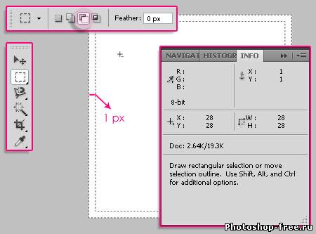 Прямоугольная область (Rectangular Marquee Tool),выделите весь наш квадрат.