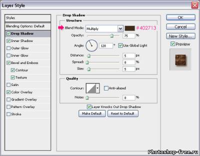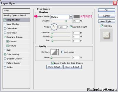 Инструмент Перемещение) так, чтобы тень началась на главном краю текста и распространилась далеко по диагонали. Непрозрачность слоя ставим 50%, режим наложения ставим Умножение
