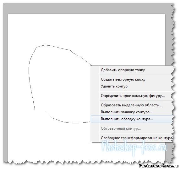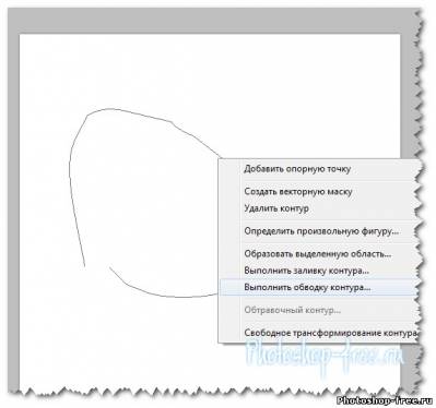 "Свободное перо" и нарисуем произвольную линию. далее клик на правой кнопке мыши и в меню выбираем "Выполнить обводку контура!" в окошке выбираем кисть и нажимаем ок! Наш контур готов
